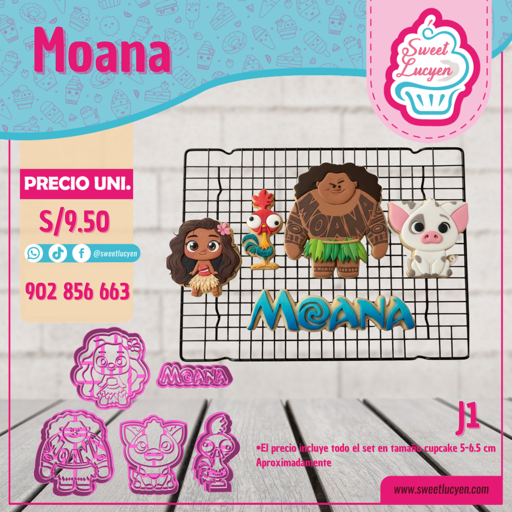 Set 5 cortadores Cupcake MOANA